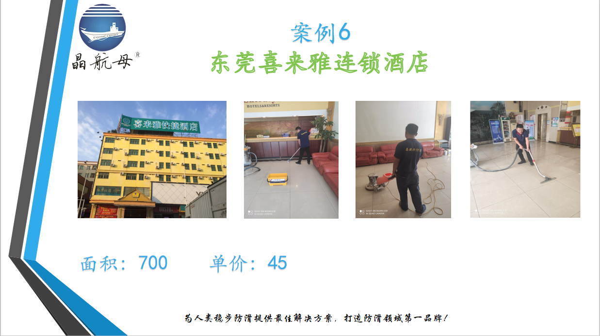 晶航母-東莞喜萊雅連鎖酒店地面防滑處理(經(jīng)典案例)面積:7...